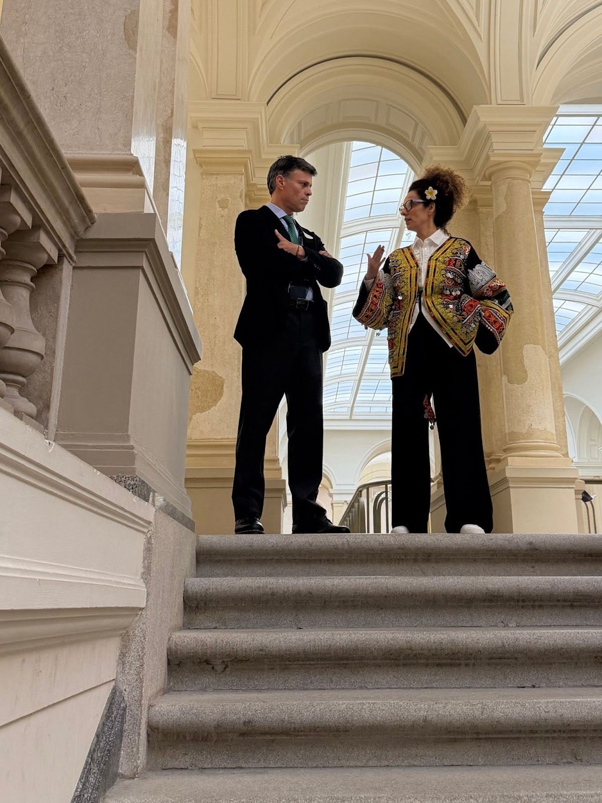 As it happens, I sit next to a man who knows all the flags of the world. He is George Bandy, an Englishman who studied in Holland and now works here in Berlin, for Alliance4Europe. That was his pandemic project: to learn all the flags of the world.