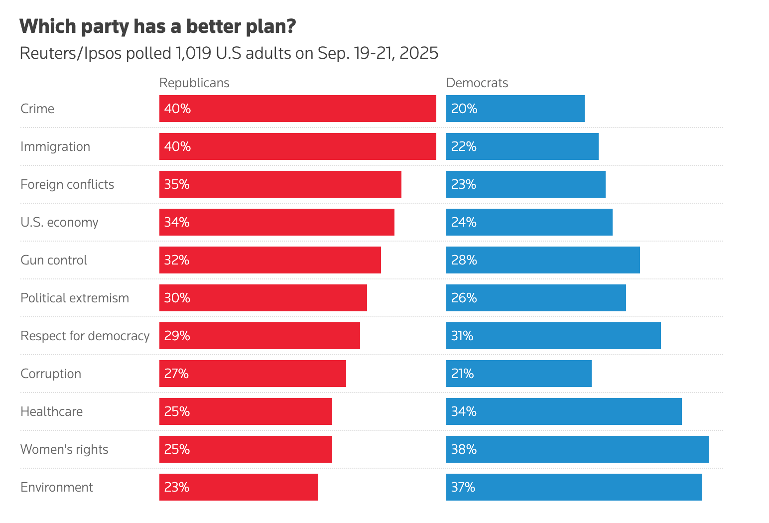 We know that Donald Trump is broadly unpopular. Yet voters trust his Republican Party where it counts the most. Consider the Reuters-Ipsos poll from earlier this month.