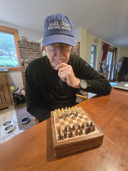 Forty years ago this month—November 1985—Garry Kasparov became World Chess Champion. We recently ran a contest giving subscribers a chance to win a free chess set autographed by Garry. Congratulations to our three winners! Here’s one winner, Mark Brumbaugh, with his prize.