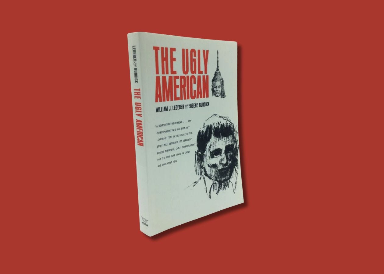 All of my life, I have burned at, and kicked against, the image of “the ugly American.” The phrase comes from the title of a 1958 novel by Eugene Burdick and William Lederer. It’s about US diplomats in Southeast Asia. It was made into a movie starring Marlon Brando.