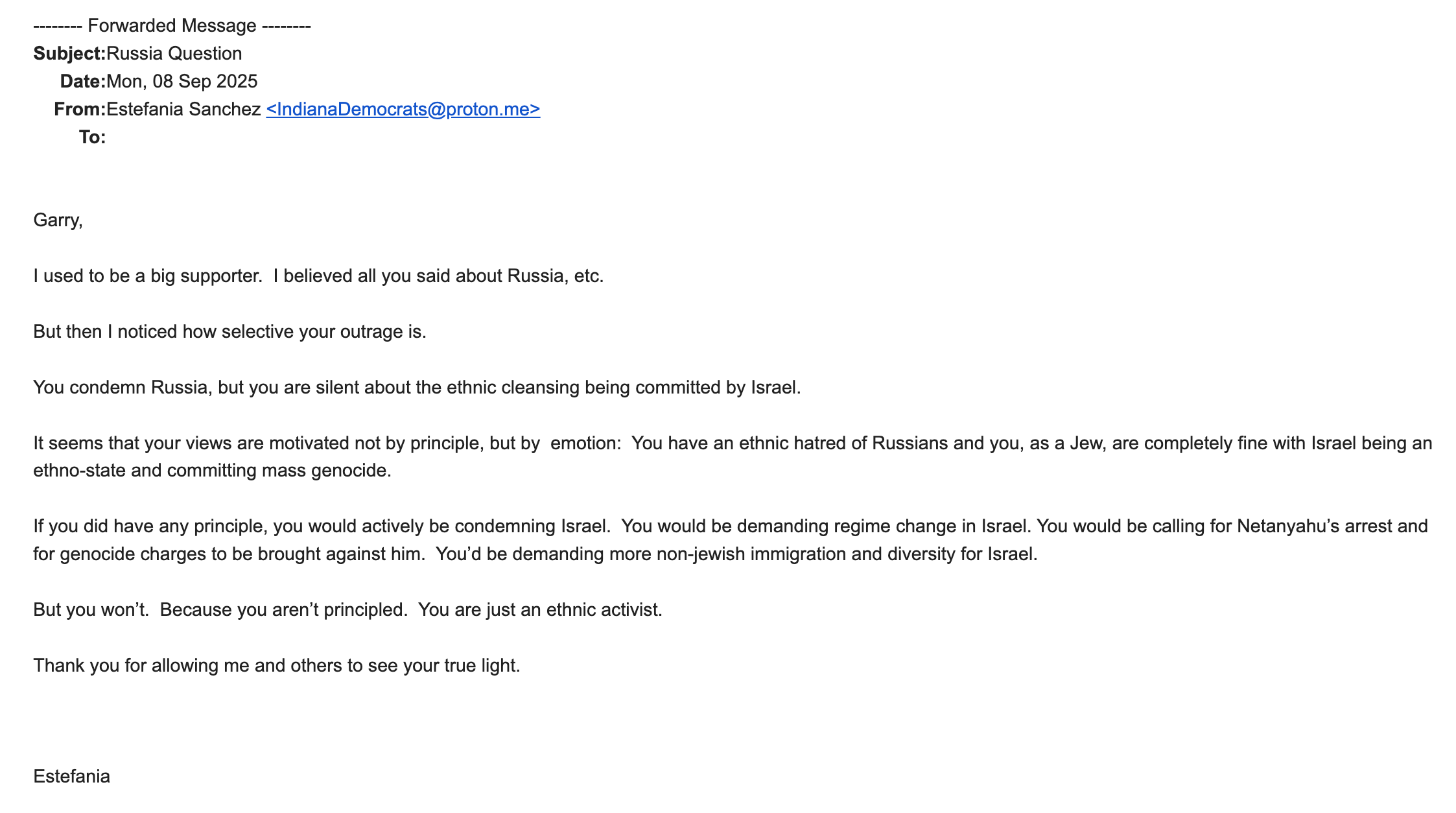 Why Are "Indiana Democrats" Sending Me Antisemitic Hate Mail?